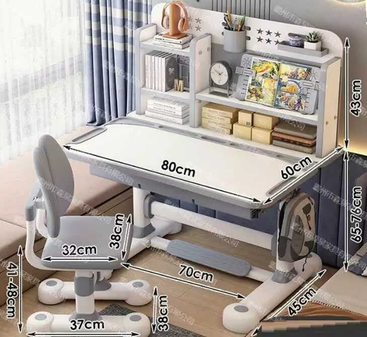 Парта дитяча зі стільчиком S-82045 (1) колір сірий, з полицями, регульована висота та нахил , з лампою, в коробці