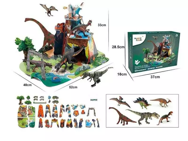 Пазли 3D 99888-12 E (10) 36 елементів, 6 фігурок динозаврів, в коробці