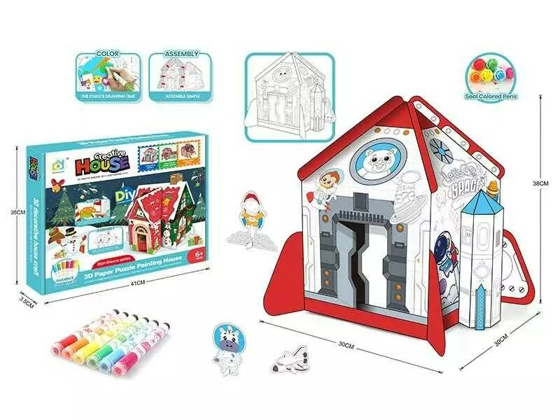 Пазли 3D "Космічна ракета" 1002 (48/2) картонні, розмальовка, 6 маркерів, в коробці