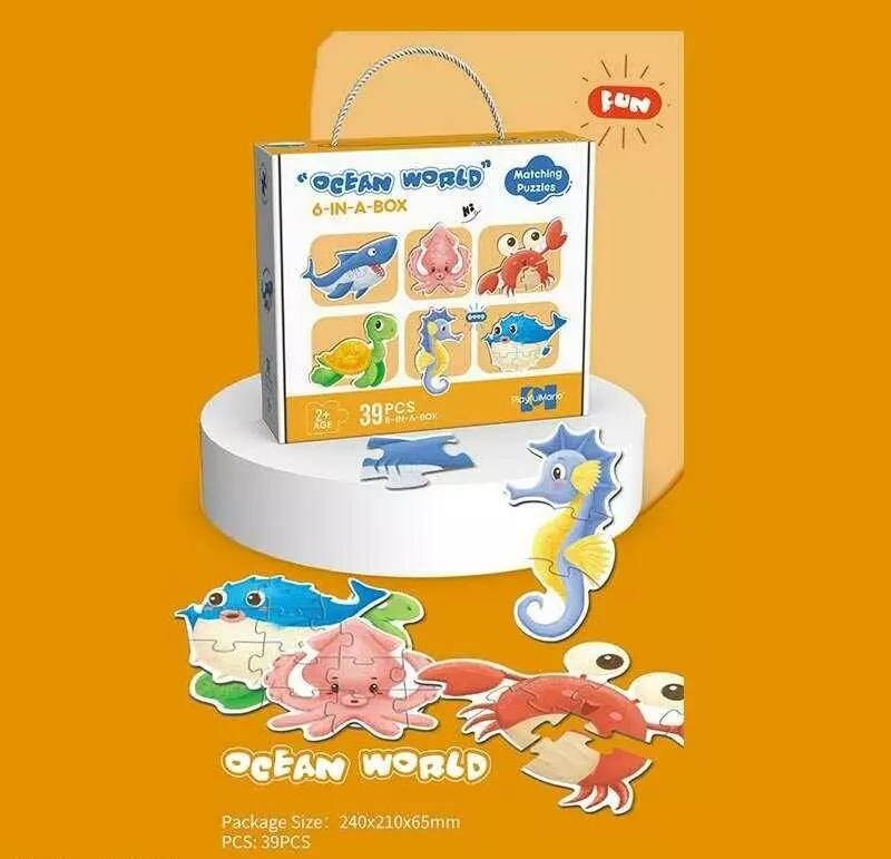 Пазли 88768 (60/3) 39 елементів, "Підводні мешканці", 6 тваринок, 6 карток-прикладів, в коробці