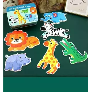 Пазли C 73874 (60) дерев’яні, 6 тварин, цифри-підказки на звороті, в боксі
