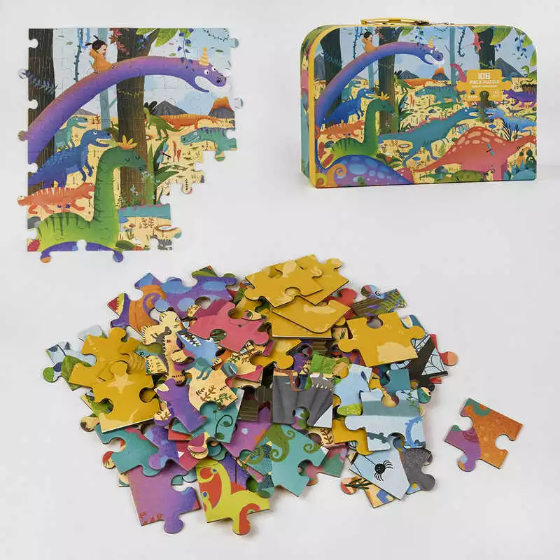 Пазлы С 48717 (12) “Эра динозавров”, 108 деталей, в чемодане