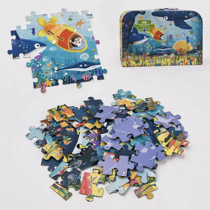 Пазлы С 48718 (12) “Океанический мир”, 108 деталей, в чемодане