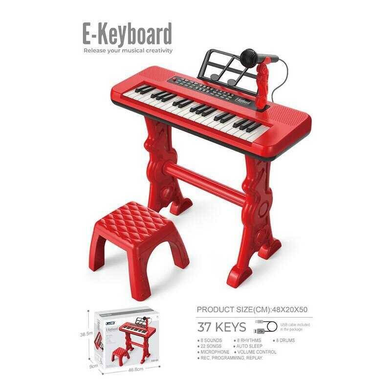 Синтезатор 328-68 (10) мікрофон, стілець, 37 клавіш, від мережі або батарейок, звук, мелодії, регулювання гучності, функція запису, в коробці