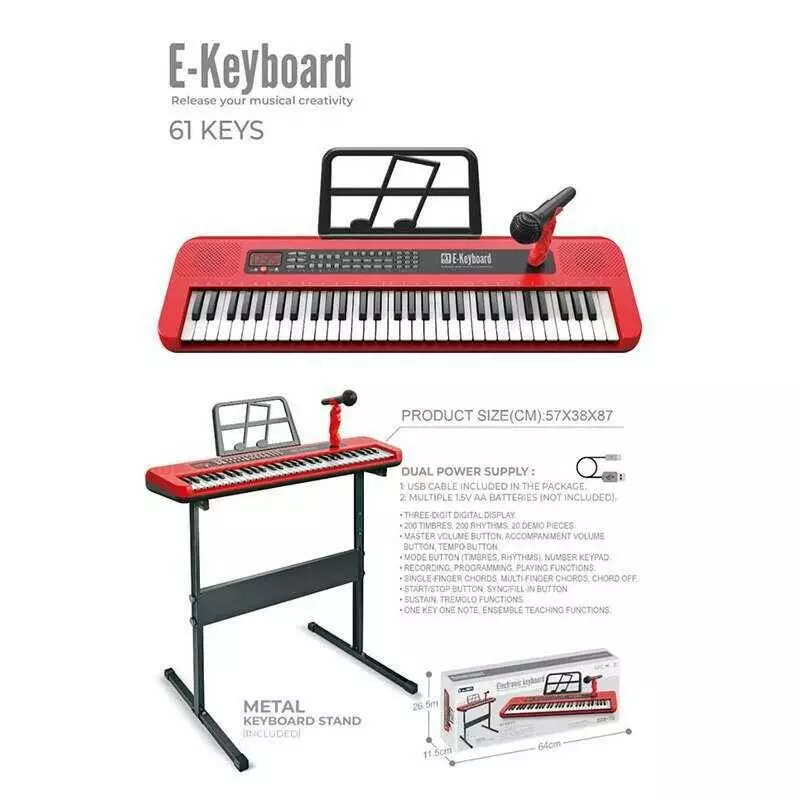 Синтезатор 328-75 (12) мікрофон, 61 клавіша, від мережі або батарейок, звук, підсвічування, регулювання гучності, музика, функція запису, в коробці