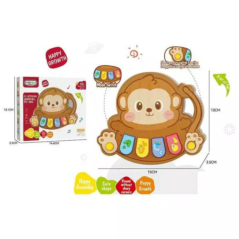 Піаніно 368-90 H (240) “Мавпа”, регулювання гучності, режими гри, ноти, мелодії, звуки тварин, на батарейках, в коробці