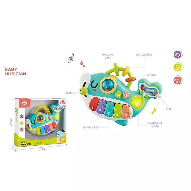 Піаніно 503-45 (72/2) звуки, мелодії, піаніно, барабан, підсвічування, брязкальце, тріскачка, намистини, в коробці