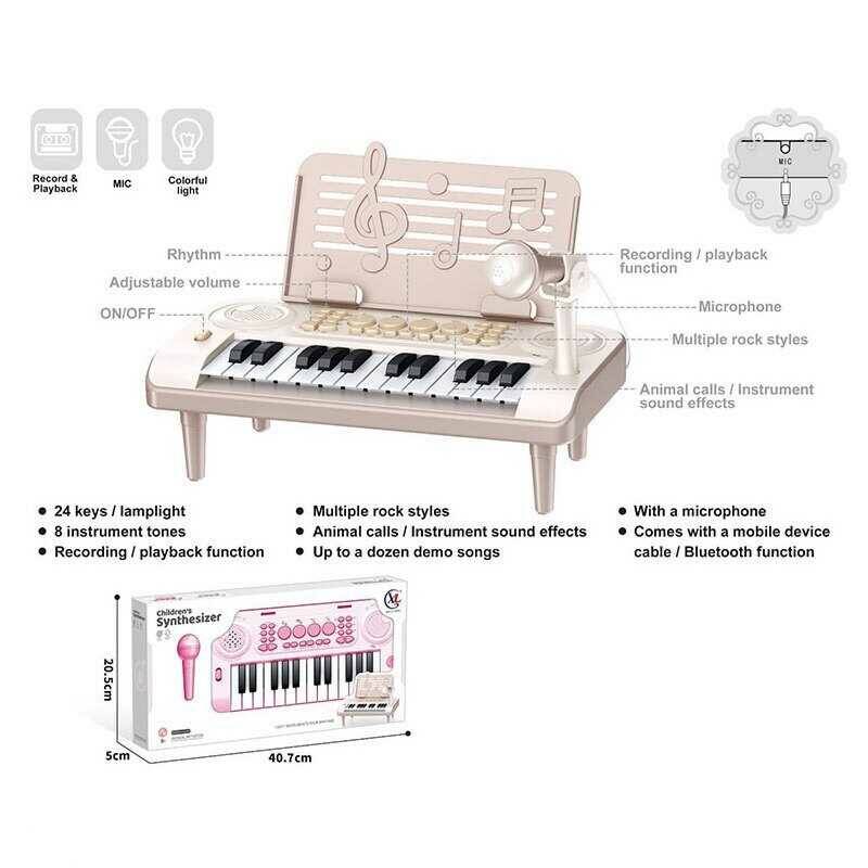 Синтезатор 6656 A (36/2) 24 клавіші, мікрофон, мелодії, барабани, функція запису, від батарейок, регулювання темпу, в коробці