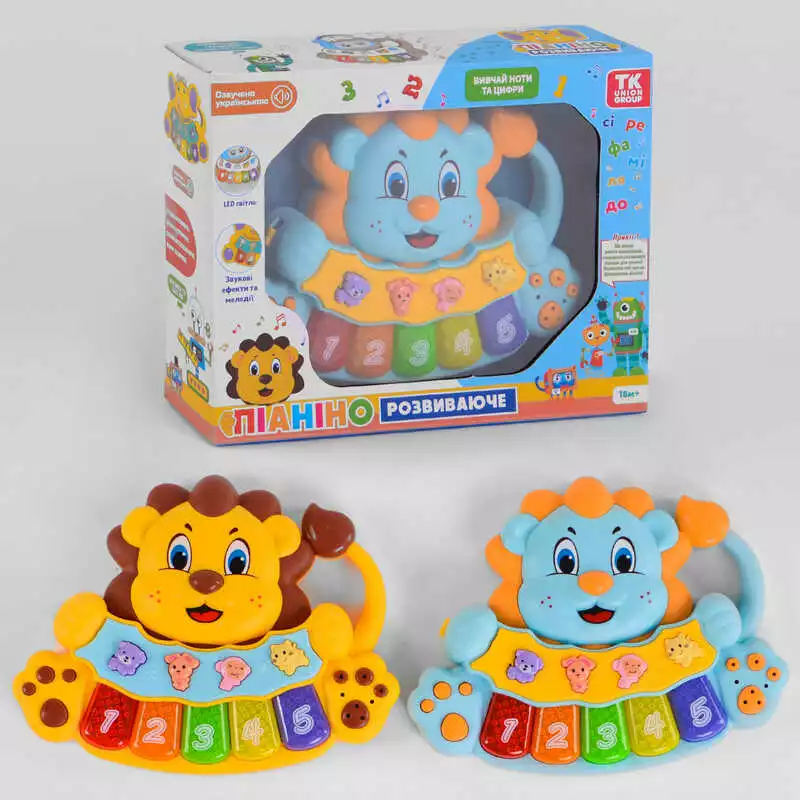 Піаніно 77971 (48) "ТК Group", 2 види, ОЗВУЧ. УКРАЇНСЬКОЮ МОВОЮ, "Левеня", підсвічування, вивчення цифр, мелодії, ноти, в коробці
