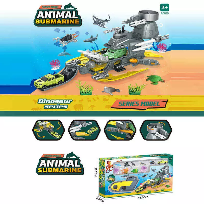 Підводний човен SY 9940 (18) “Субмарина”, 6 фігурок тварин, розкладається, механічний запускач, 2 пушки, снаряди, рухомі елементи, в коробці