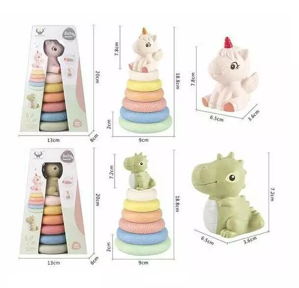 Пірамідка 628-155 (72/2) 2 види, розмір: 9х18.8 см, гумова, 7 елементів, фігурка звірятка, в коробці