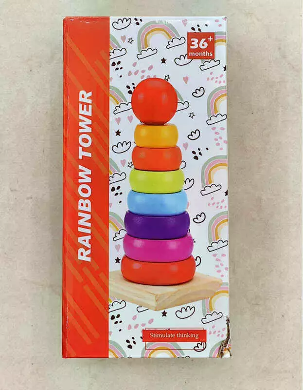 Пірамідка дерев`яна C 68838 (60) висота 20 см, 7 кілець різного діаметру, 1 кулька, в коробці