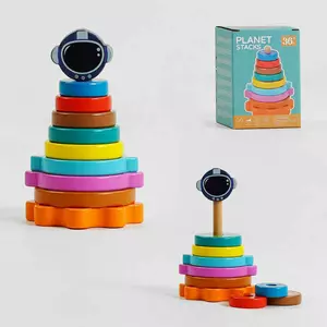 Пірамідка дерев`яна С 58108 (60) "Сонячна система", 16 см, у коробці