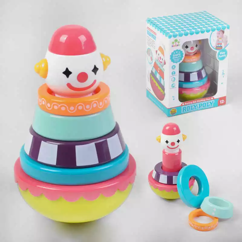 Пірамідка SL 83019 (36/2) "Клоун", нелягайко, 4 кільця-брязкальця, в коробці