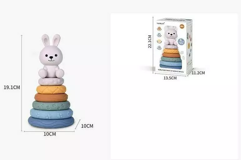 Пірамідка TT 2012 (72) розмір: 10х10х19.1 см, 6 кілець, звірятко, гума, в коробці