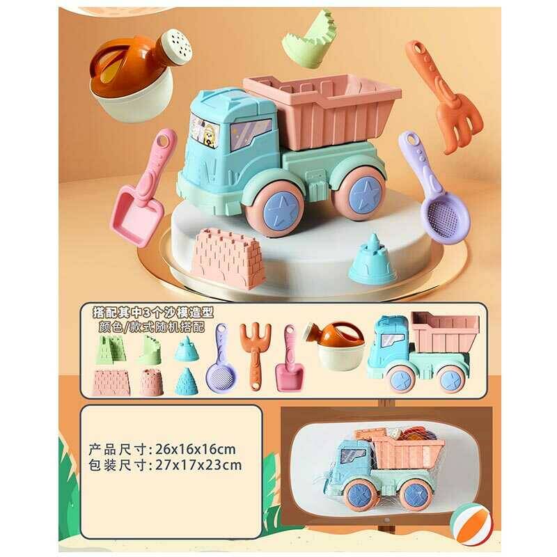 Пісочний набір 913-313 (48/2) розмір самоскида - 26х16х16 см, сито, лопатка, граблі, лійка, 3 формочки, рухомі елементи, в сітці