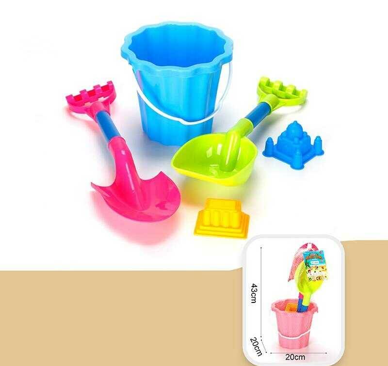 Пісочний набір JX 6853 (48) відро, 2 лопати, 2 формочки, в сітці, ВИДАЄТЬСЯ ТІЛЬКИ МІКС ВИДІВ