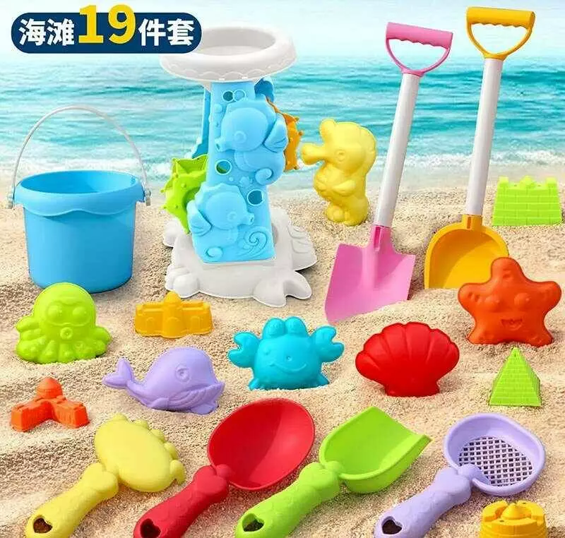 Пісочний набір W 218-44 (72/2) висота відра - 10 см, млин, граблі, сито, 2 великі лопатки, 2 маленькі лопатки, 11 формочок, в сітці