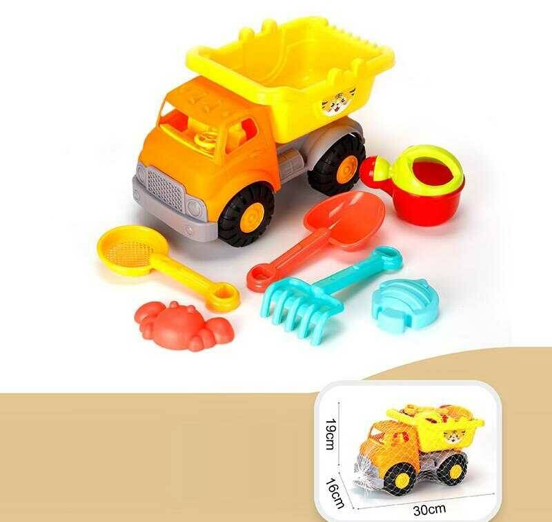 Пісочний набір YF 3637 (45) машина - самоскид, лопатка, граблі, лійка, сито, 2 формочки, в сітці