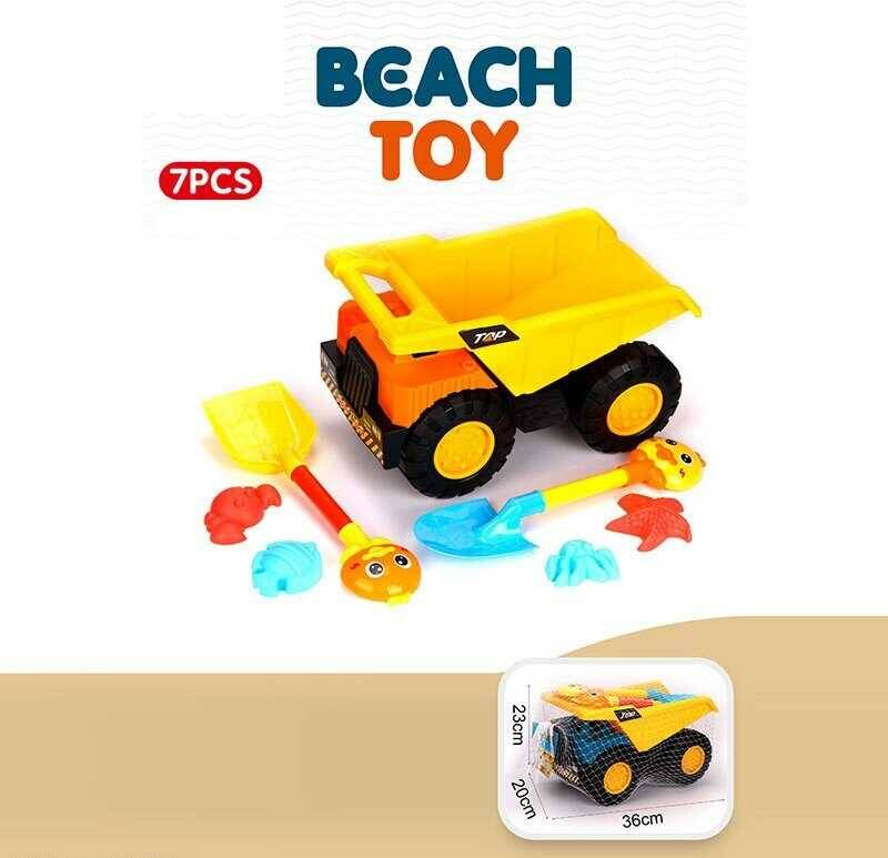 Пісочний набір YF 3693 (20) 7 елементів, самоскид, лопатка, граблі, форми для піску, в сітці