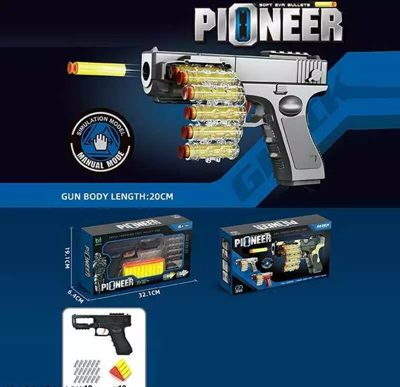 Пістолет 009 (48/2) стріляє м’якими патронами, механічний принцип роботи, кульова стрічка, 18 патронів, в коробці