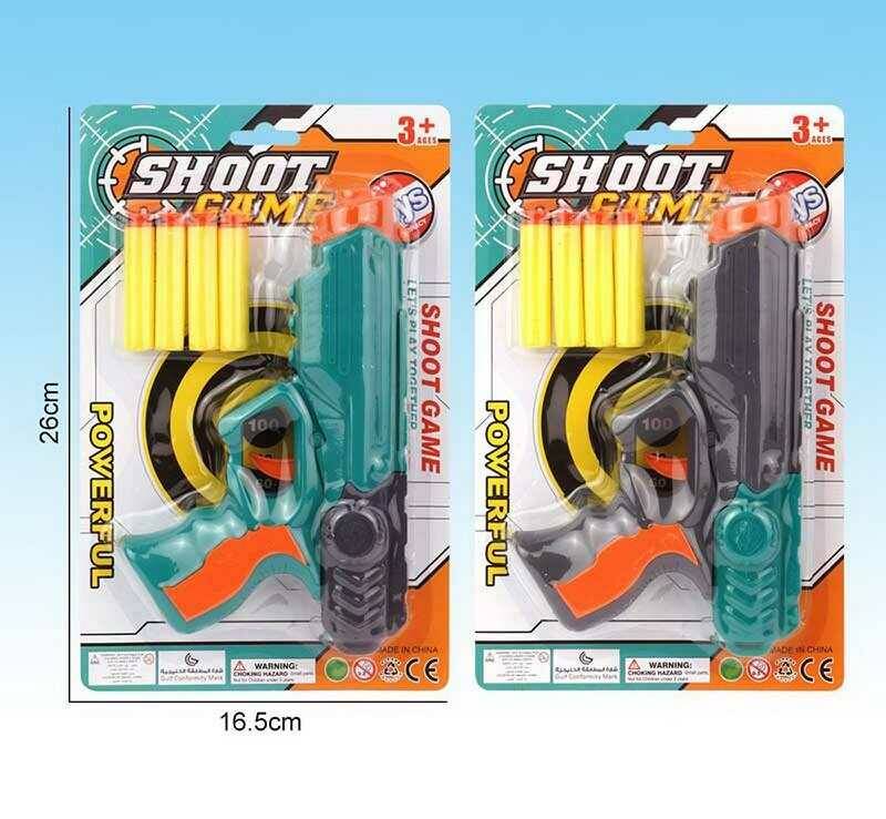 Пістолет 382 (168/2) 2 кольори, м’які патрони на присосці, на листі