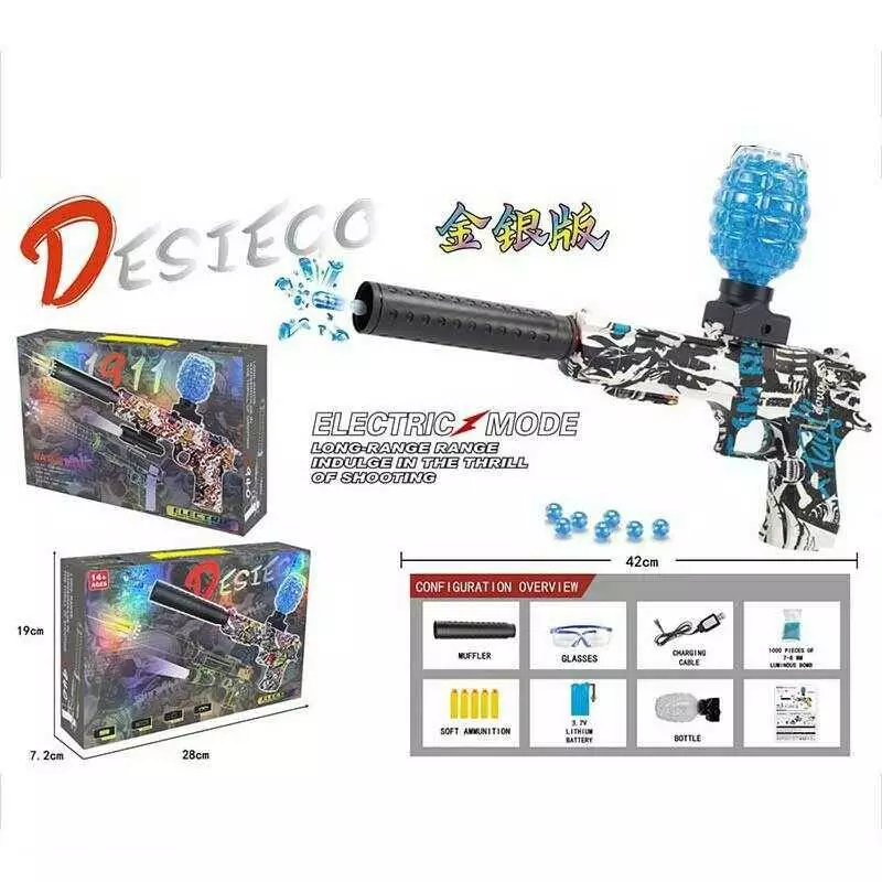 Пістолет G 930-2 (36) стріляє орбізами та м`якими патронами, автоматичний принцип, акумулятор 3.7 V, окуляри, USB-кабель, в коробці
