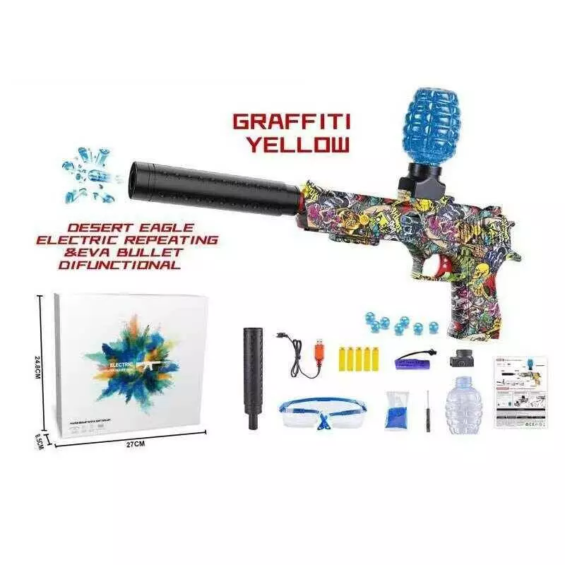 Пістолет G 930-4 (32) стріляє орбізами, м’якими патронами, від акумулятора 3.7 V, глушник, 5 м’яких патронів, орбізи, захисні окуляри, в коробці