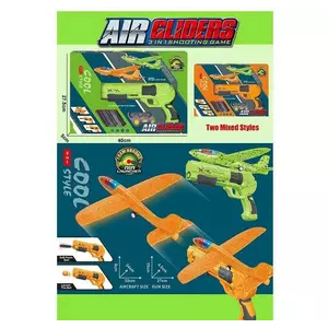 Пістолет із запускачем 949-104 (60/2) 2 кольори, механічний принцип, літачок з підсвічуванням, 6 куль, 3 м’які патрони з присосками, в коробці