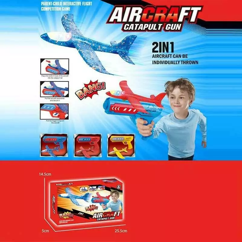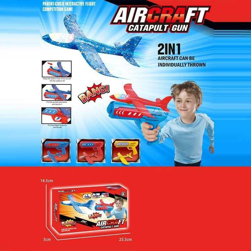 Пістолет із запускачем YY 04 (72) 2 види, механічний принцип роботи, літачок з підсвічуванням, в коробці