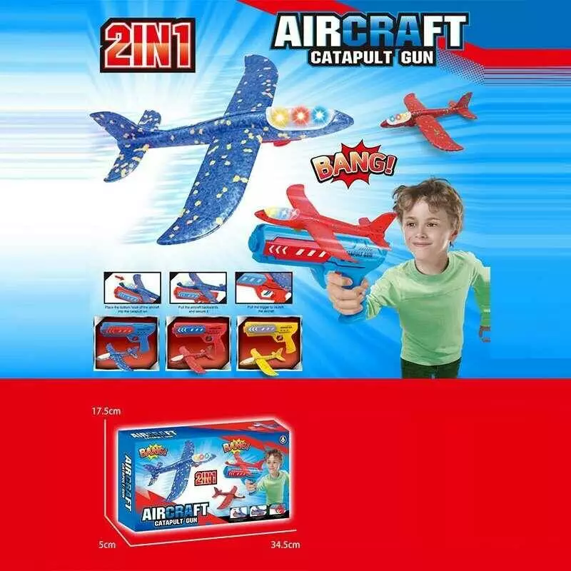 Пістолет із запускачем YY 28 (72) 2 види, механічний принцип роботи, літачок з підсвічуванням, в коробці