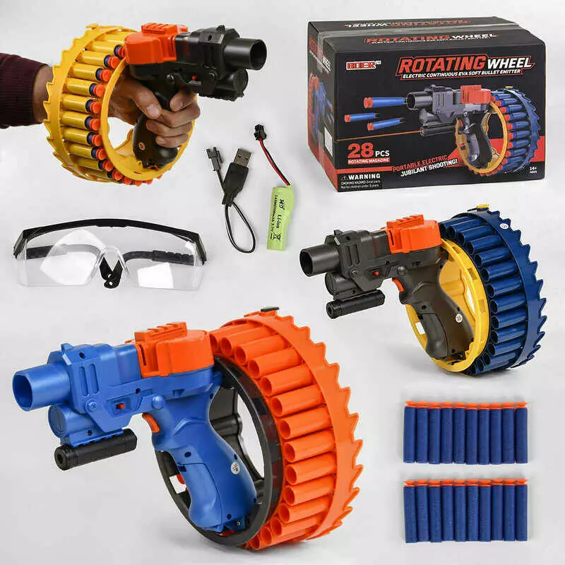Пістолет KB 113 /113-1/113-2 (8) 3 кольори, акумулятор 3.7V, 30 мягких патронов на присоске, съемный лазер, защитные очки, в коробке, МІКС ВИДІВ