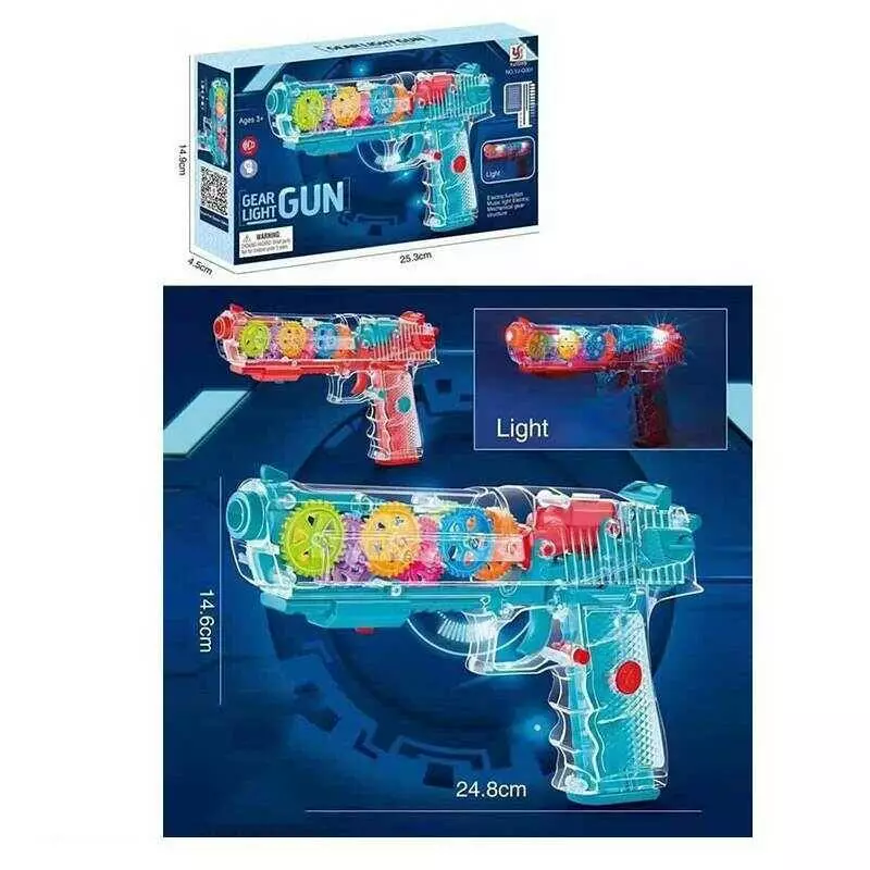 Пістолет YJ-Q 001 (96/2) 2 кольори, світло, звук, прозорий корпус, рухливі шестерні, на батарейках, в коробці