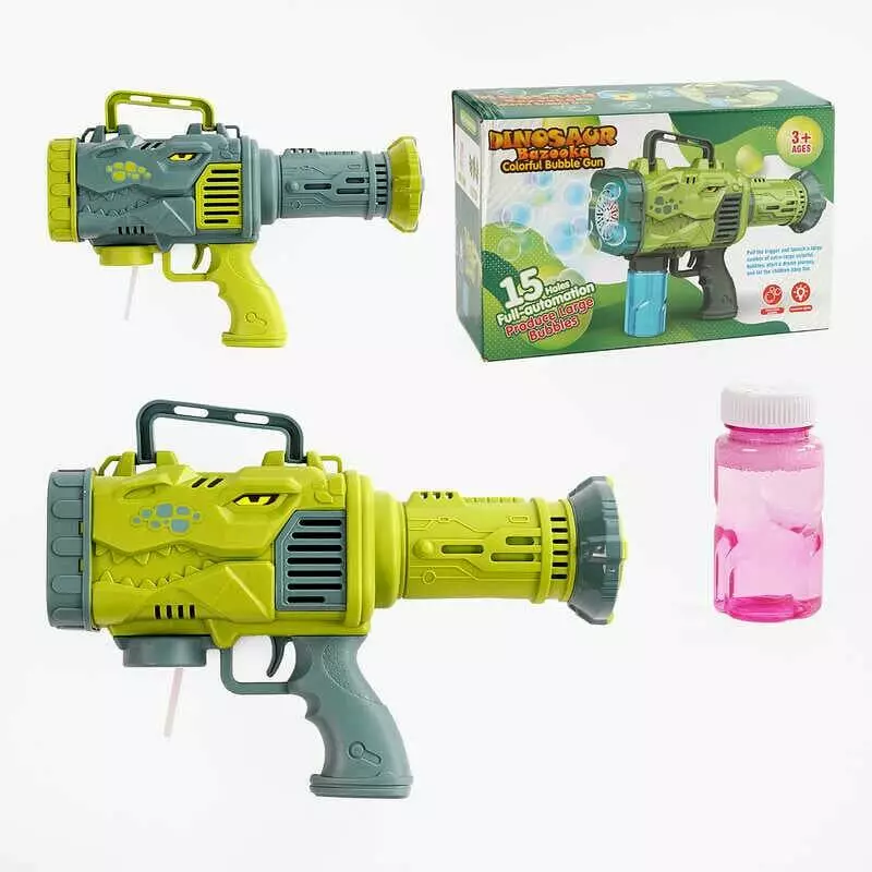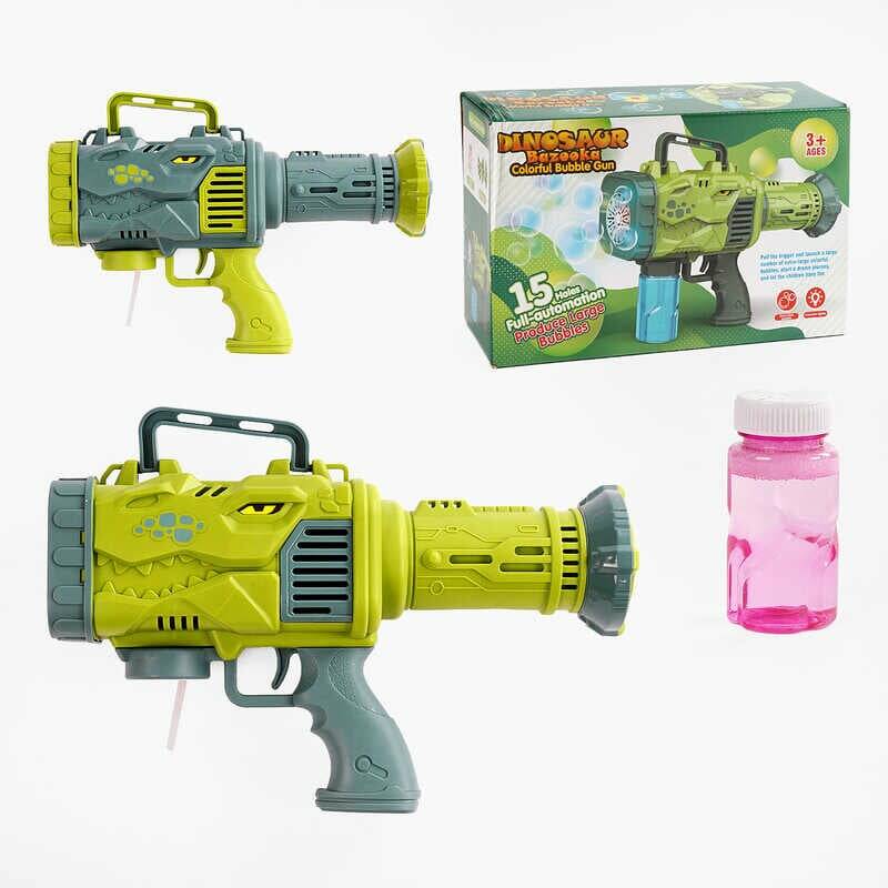 Пістолет з мильними бульбашками 018 (60) 2 види, “Динозавр”, від батарейок, бульбашки, підсвічування, в коробці