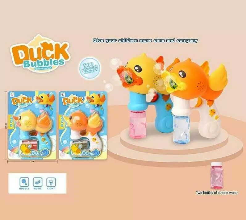 Пістолет з мильними бульбашками 1035 (64/2) "Каченя", 2 кольори, 2 пляшечки з мильним розчином, на листі