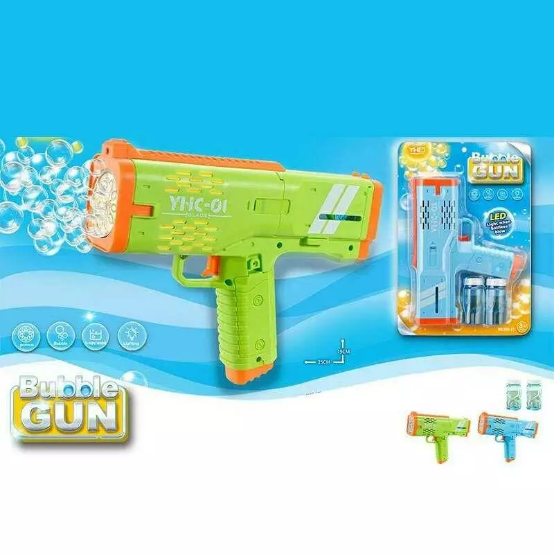 Пістолет з мильними бульбашками 333-21 (60/2) 2 кольори, автоматичний принцип, 2 пляшки мильного розчину, на батарейках, підсвічування, на листі