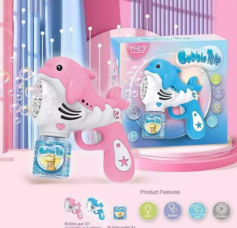Пістолет з мильними бульбашками 333-22 (72) 2 кольори, “Дельфінчик”, автоматичний принцип, мильний розчин, на батарейках, підсвічування, в коробці