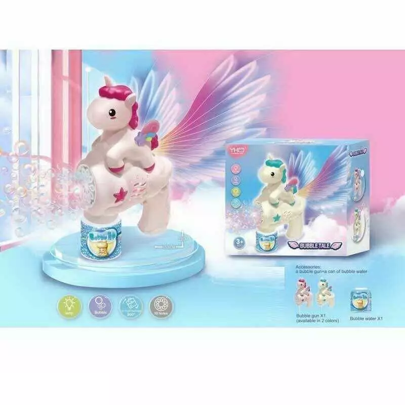 Пістолет з мильними бульбашками 333-25 (72) “Єдиноріг”, автоматичний принцип, мильний розчин, на батарейках, підсвічування, в коробці