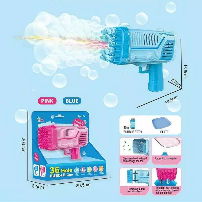 Пістолет з мильними бульбашками 456-13 (72) підсвічування, 36 отворів, автоматичний принцип, пляшечка з мильним розчином, посудина, в коробці