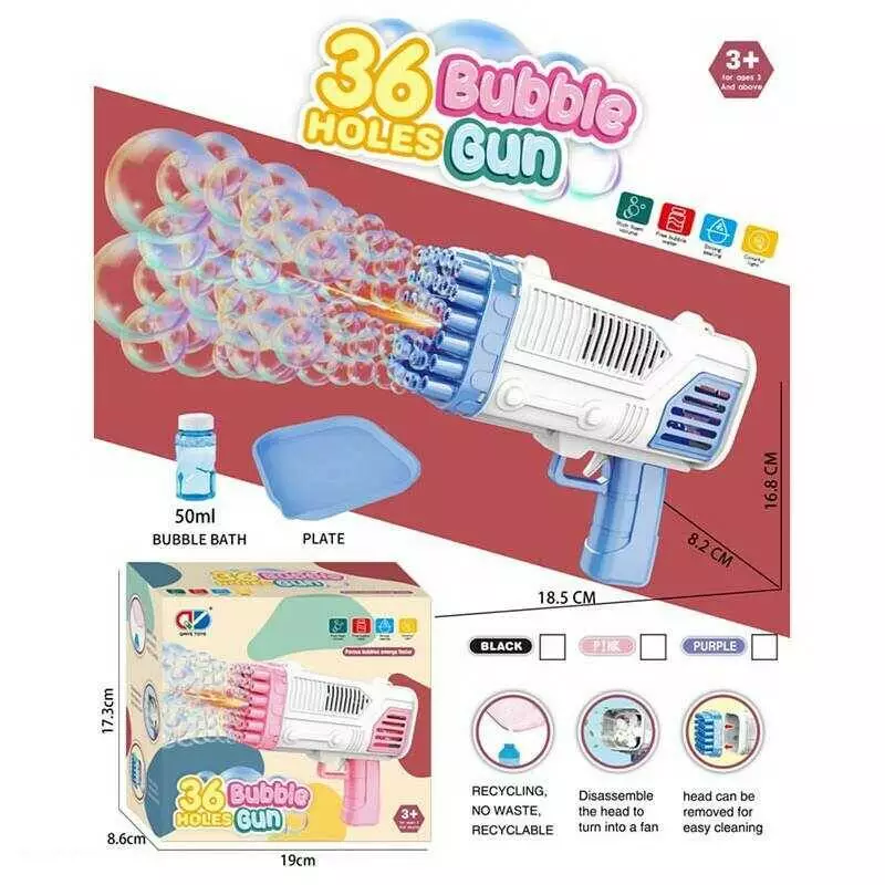Пістолет з мильними бульбашками 456-13 A (72) на батарейках, підсвітка, автоматичний принцип роботи, мильний розчин, мисочка, в коробці