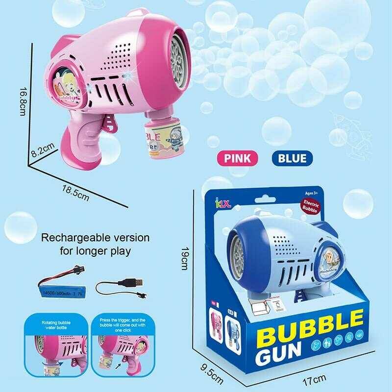 Пістолет з мильними бульбашками 456-14 B (96) 2 види, підсвічування, автоматичний принцип, пляшечка з мильним розчином, акумулятор 3.7V, в коробці