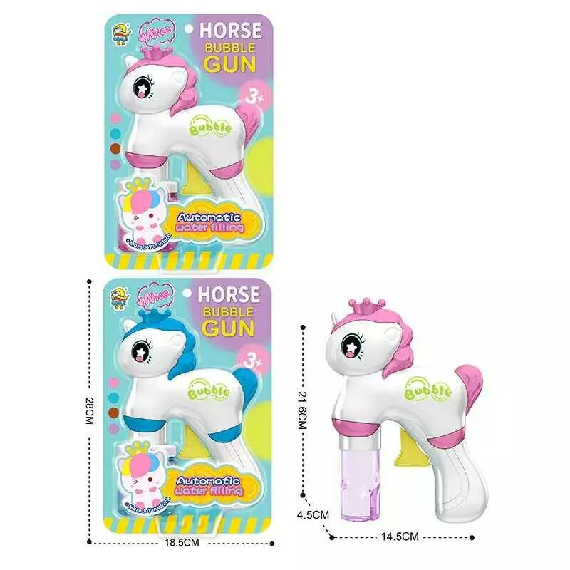 Пістолет з мильними бульбашками 506 (72/2) "Єдиноріг", 2 кольори, 2 баночки з розчином, на листі