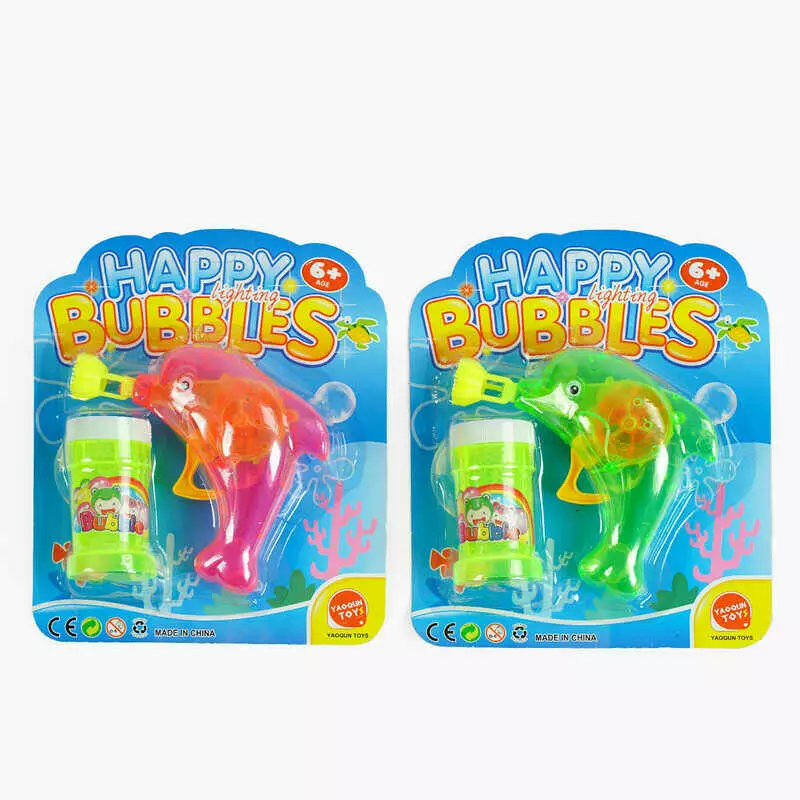 Пістолет з мильними бульбашками 9907 A (216/2) 2 кольори, механічний, прозорий корпус, пляшечка із мильною рідиною, на листі