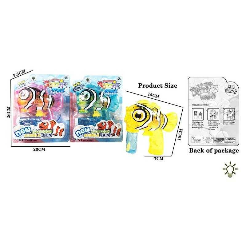 Пістолет з мильними бульбашками JNH 806 (96/2) 3 види, “Рибка”, механічний, пляшечка з розчином, підсвічування, на листі, ТІЛЬКИ МІКС ВИДІВ