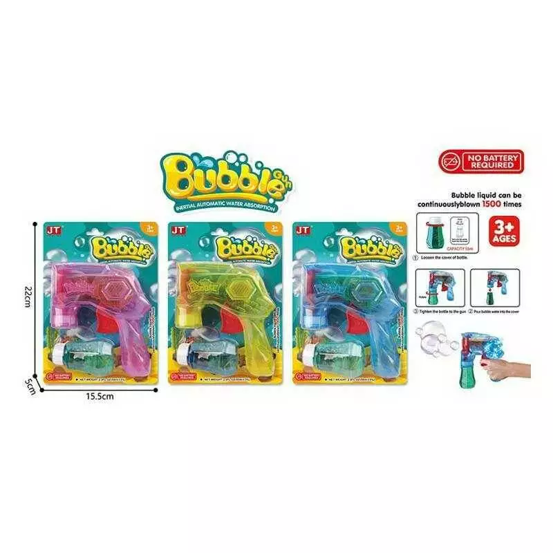 Пістолет з мильними бульбашками JT 6907 (120/2) 3 кольори, підсвічування, механічний принцип роботи, пляшка з мильним розчином, на листі, ВИДАЄТЬСЯ ТІ