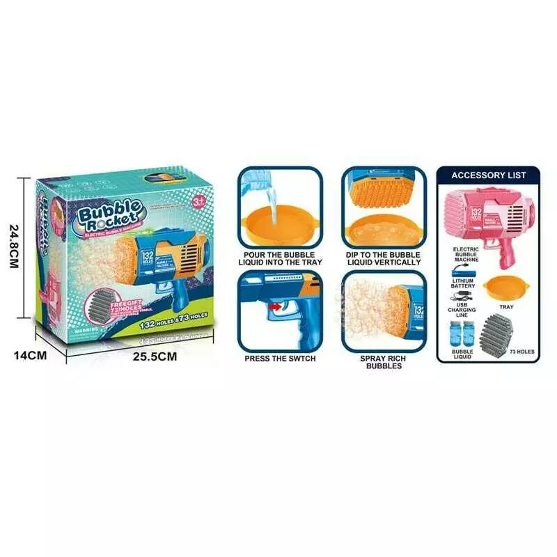Пістолет з мильними бульбашками KB 1280 (24) акумулятор 3.7 V, підсвітка, мильний розчин, USB кабель, тарілочка, насадка, в коробці