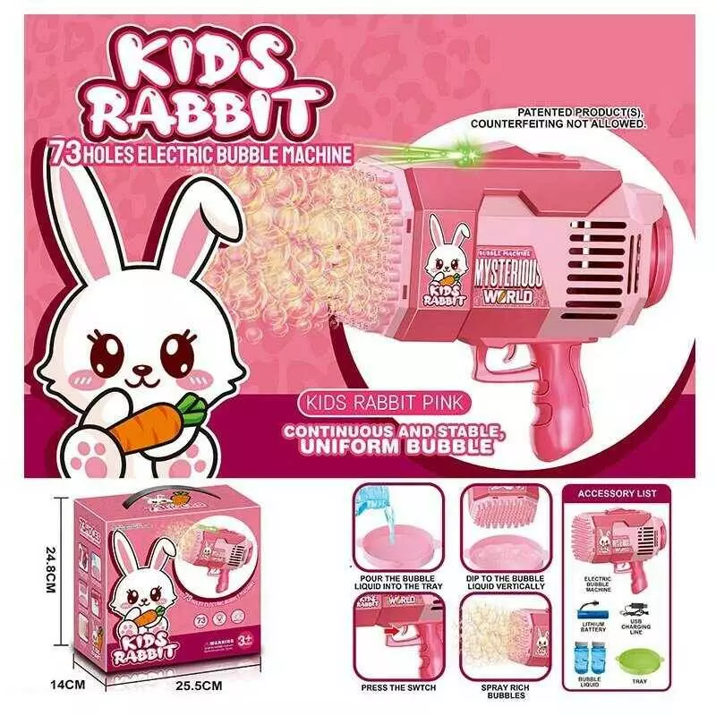 Пістолет з мильними бульбашками KB 1284 (24) підсвічування, 73 отвори, акум. 3.7V, 2 пляшечки з мильним розчином, посудина, в коробці