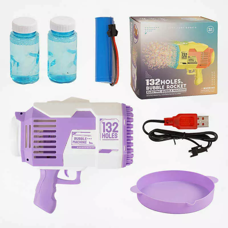 Пістолет з мильними бульбашками KB 1293 Штрихкод = 90842 (24) підсвічування, 132 отвори, 2 пляшки з мильним розчином, ак. 3.7V, USB-кабель, в коробці