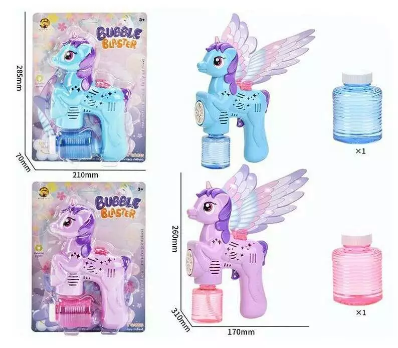 Пістолет з мильними бульбашками MY 297-2 (60/2) 2 види, “Пегас”, підсвічування, від батарейок, крила, мильні бульбашки, на листі