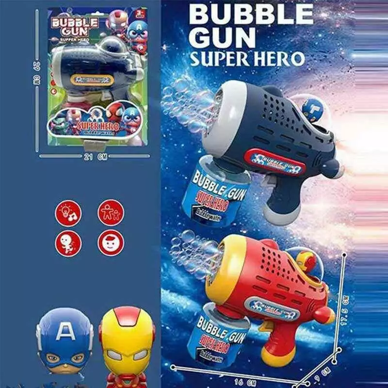 Пістолет з мильними бульбашками YD 707 A (72/2) 2 види, підсвічування, мелодія, автоматичний, пляшечка з мильним розчином, фігурка героя, в коробці